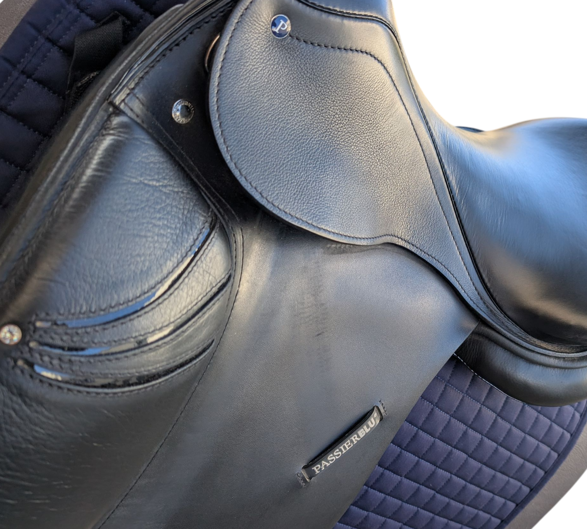 Hochwertiger Dressursattel Passier Blue Style, Baujahr 2023. Ideal für anspruchsvolle Reiter im Dressurleistungssport – bietet maximale Stabilität und optimale Hilfengebung.